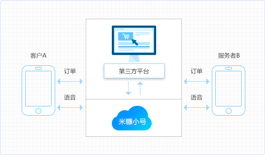 AXB模式:A和B是主号,X是米糠小号,A和B同时与X绑定。A和B之间不知道对方真实号码,A呼叫X可以联系到B;反之,B呼叫X也可以联系到A。小号可以循环使用,且一个小号可以同时支持一百组订单绑定,为企业节省号码资源和成本,通话完成后有通话记录或通话录音可以进行下载。