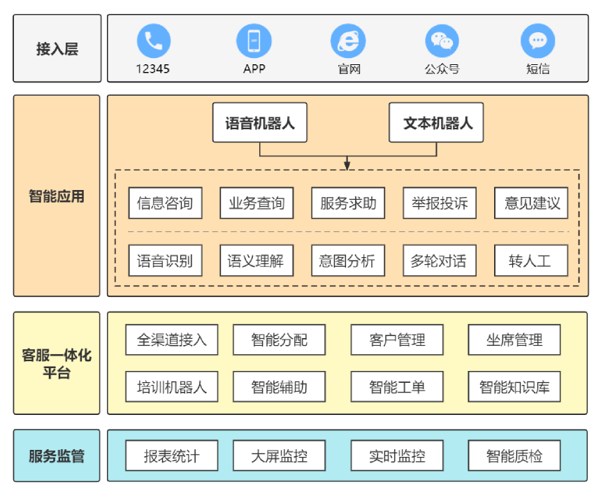 客服热线平台融合呼叫中心 ,打通电话、APP、官网、微信公众号等渠道,一站式接入居民咨询,实现各渠道互联互通,提高服务效率。