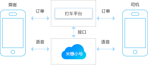 - 乘客通过打车平台下订单,由打车平台通过米糠小号将乘客手机与司机手机绑定在一起。